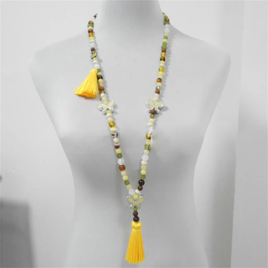Длинный богемный ретро кулон Бабочка кисточкой свитер с бисером цепь