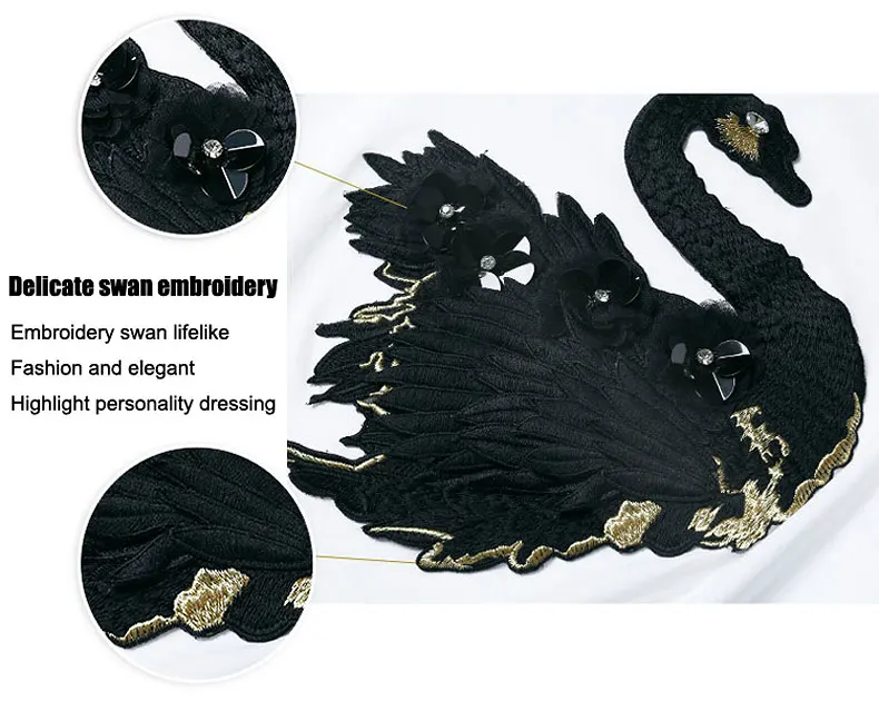 Новинка 2021, Женская Повседневная Свободная футболка с v-образным вырезом, большие размеры, Длинные футболки с коротким рукавом и вышивкой в виде лебедя, черные облегающие Топы для женщин