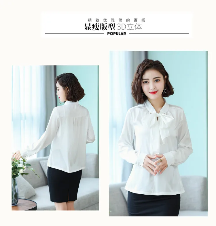 Женская Офисная рубашка, Элегантная Шелковая атласная блузка с длинным рукавом и бантом, вечерние топы размера плюс XXXL, 2019