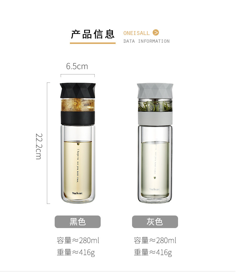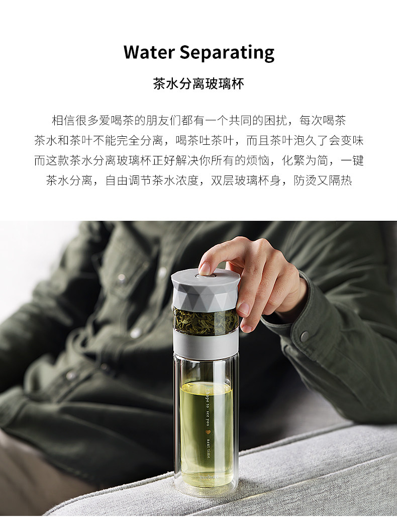 280 мл стеклянная чашка для чая с двойными стенками, бизнес-бутылка для воды, портативная бутылка для воды для путешествий