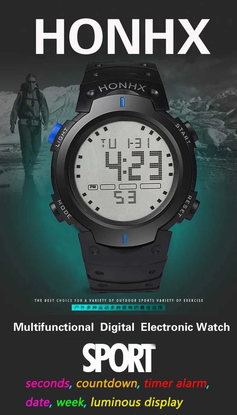 2019 модные водонепроницаемые Мужские спортивные наручные часы с ЖК-дисплеем и цифровым секундомером для мужчин и мальчиков, Прямая поставка, спортивные часы Wd3