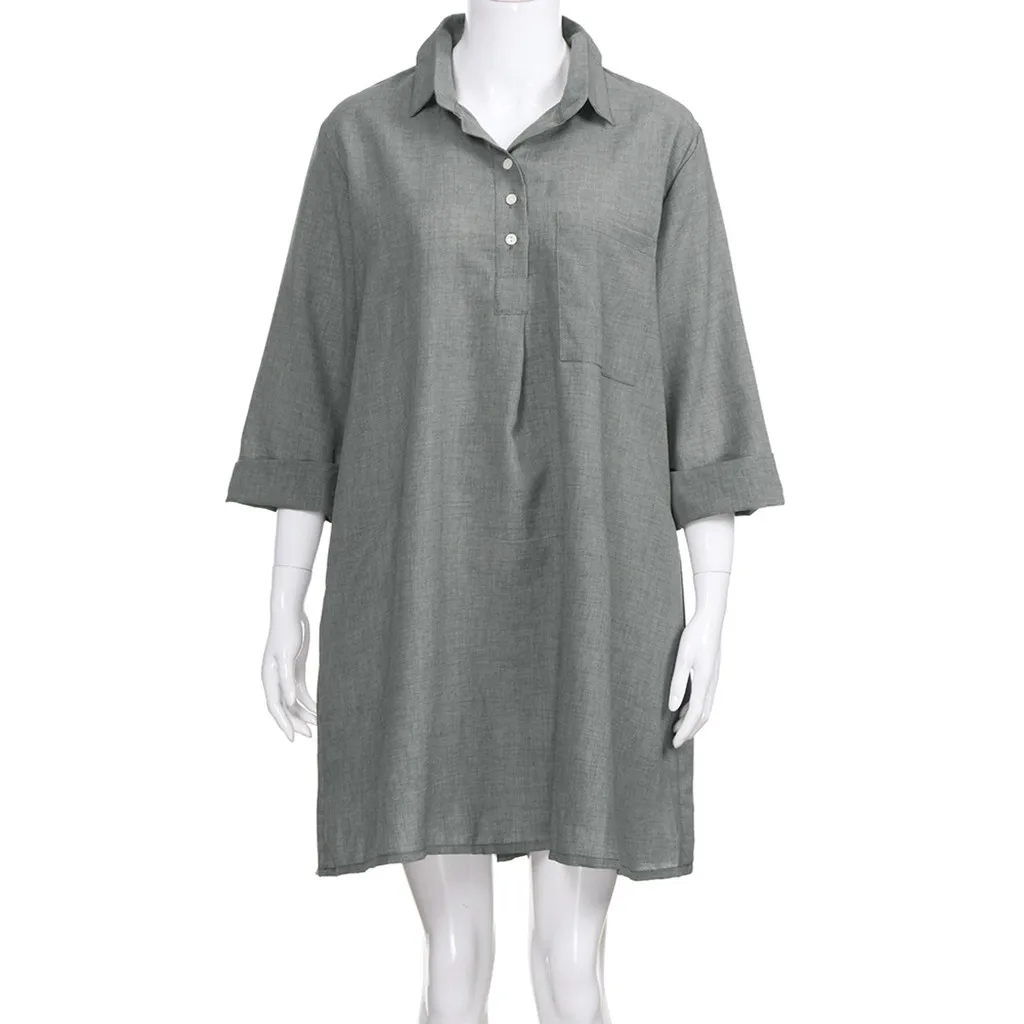 Однотонное платье omen's в стиле бохо с отложным воротником и рукавом 3/4, Повседневное платье на пуговицах с карманами