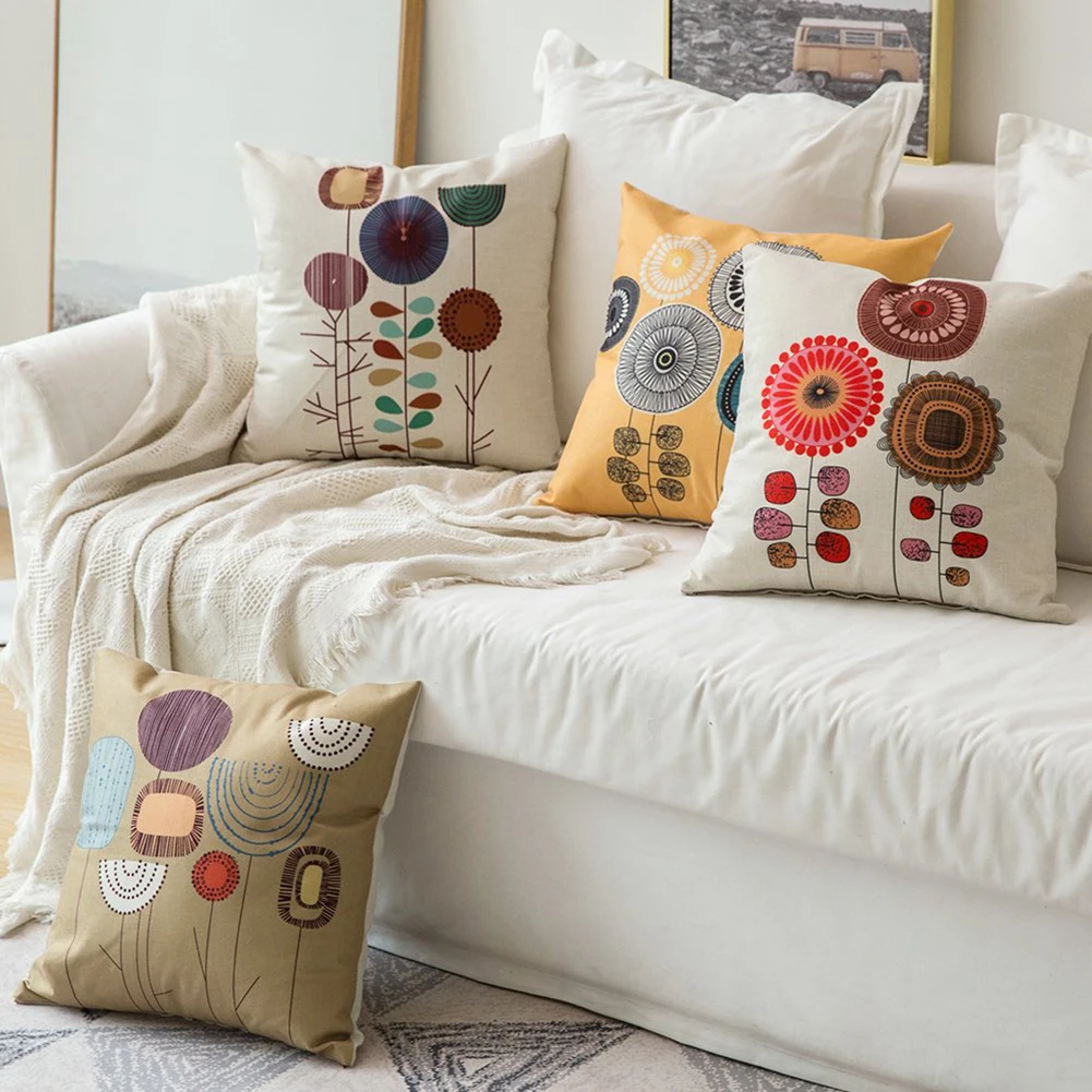 Ретро круглая Цветочная льняная наволочка для дивана, кровати, автомобиля, офисного декора