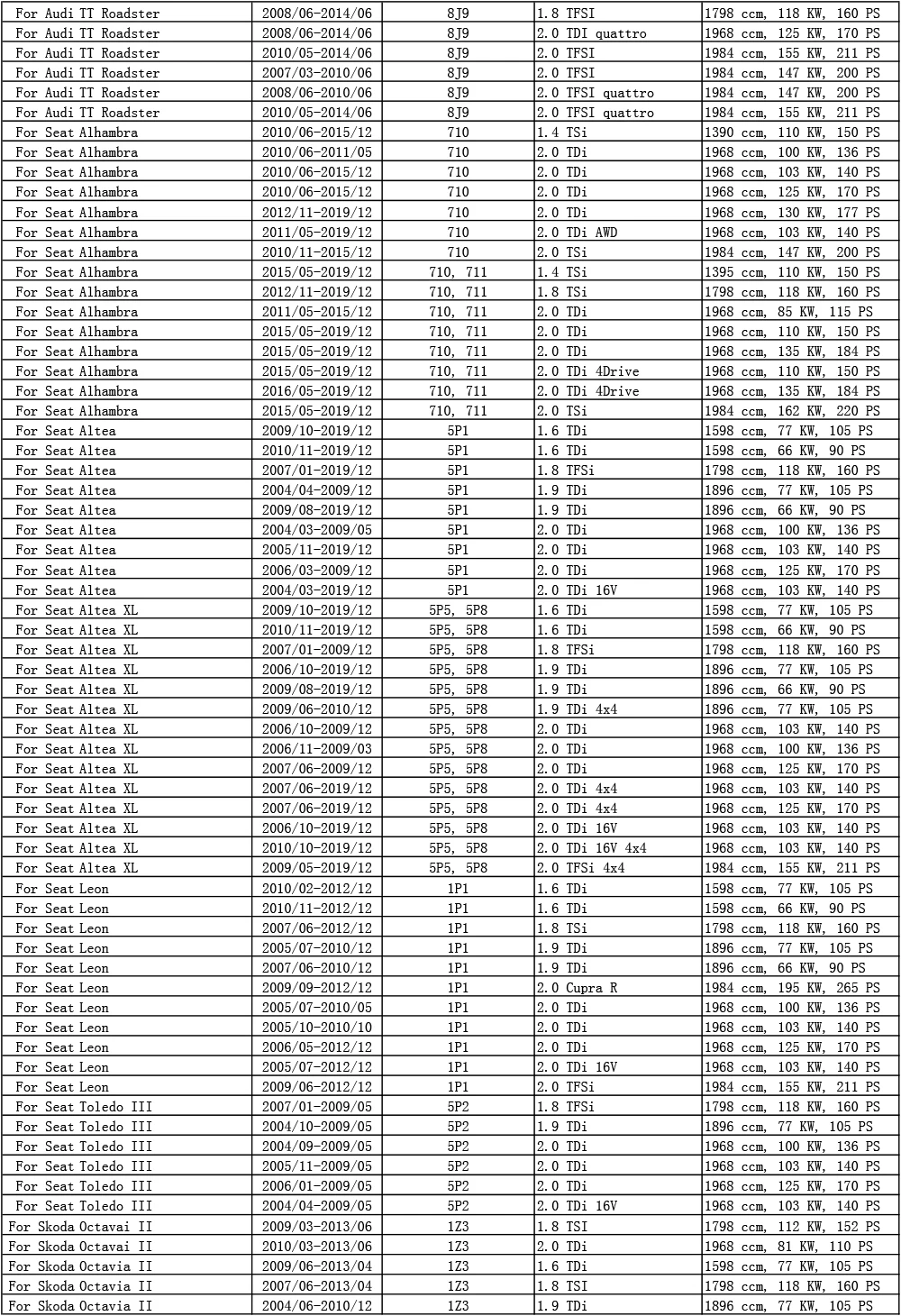 Для Seat Alhambra 710, 711 Altea 5P1 Altea XL 5P5, 5P8 Leon 1P1 Toledo III 5P2