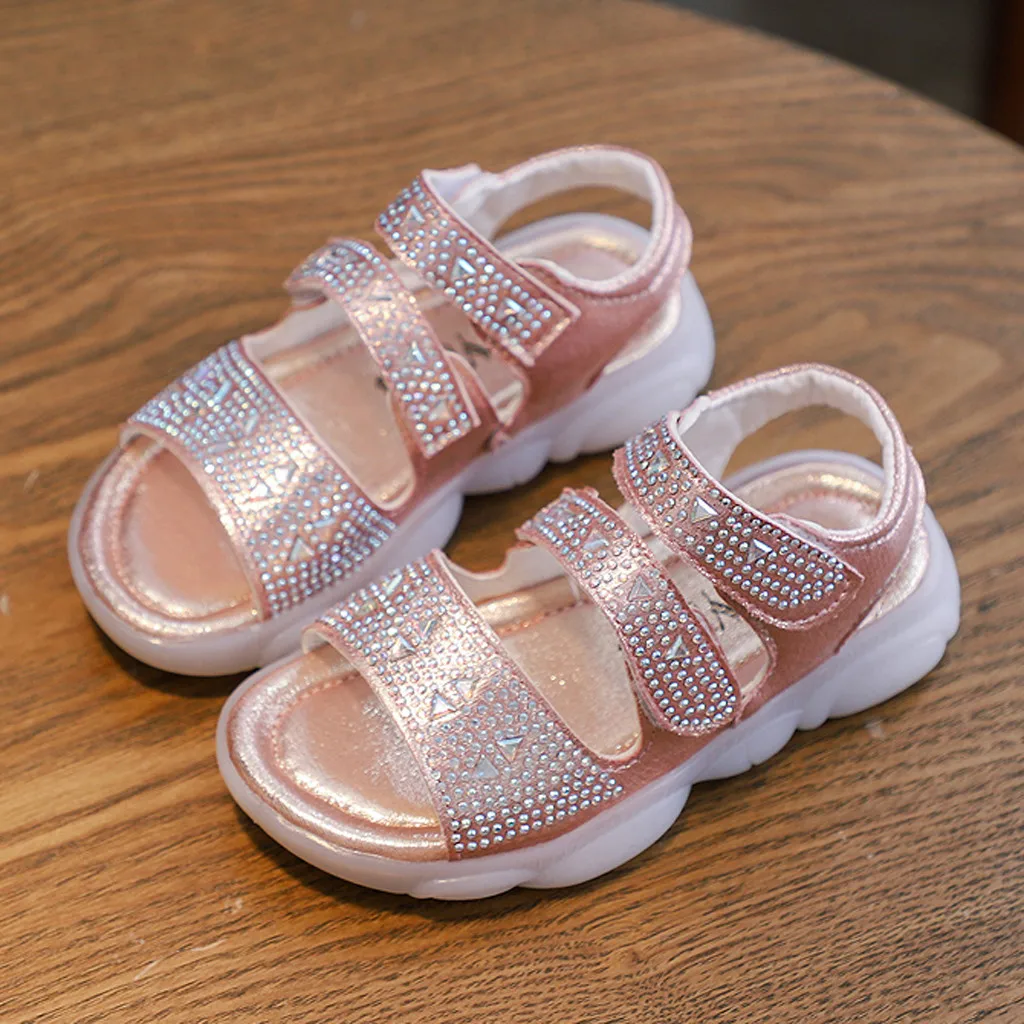 Обувь с кристаллами для маленьких девочек; шикарная Летняя обувь принцессы; сандалии