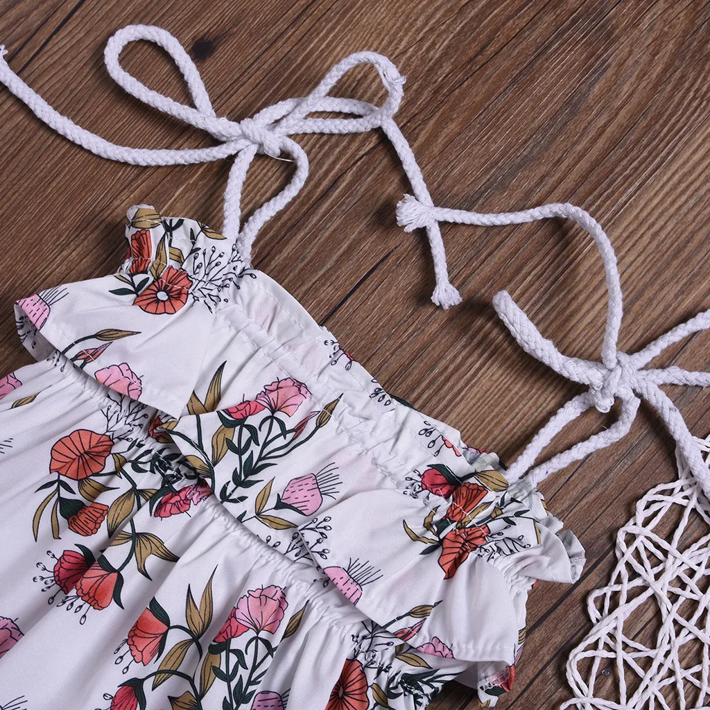 Летняя одежда для сестер; детское платье с цветочным принтом на бретелях для маленьких девочек; Сарафан