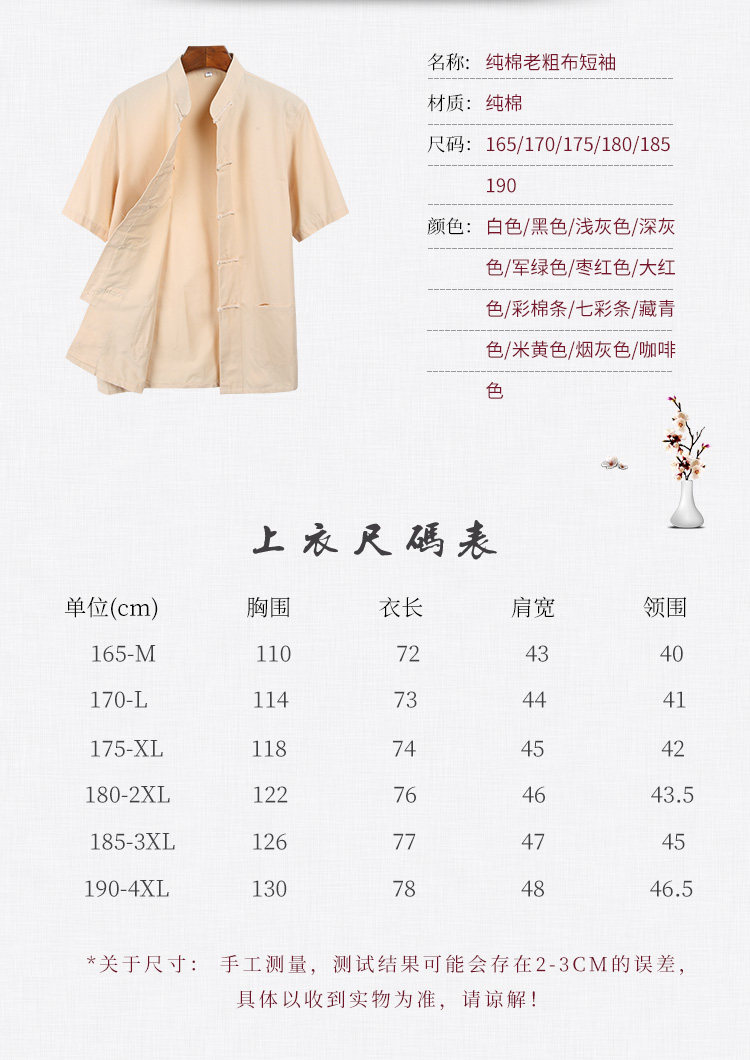 Материал: грубый хлопок Короткий рукав Китайский Pankou и пуговицы ТОЛЬКО Блузка (без штанов)