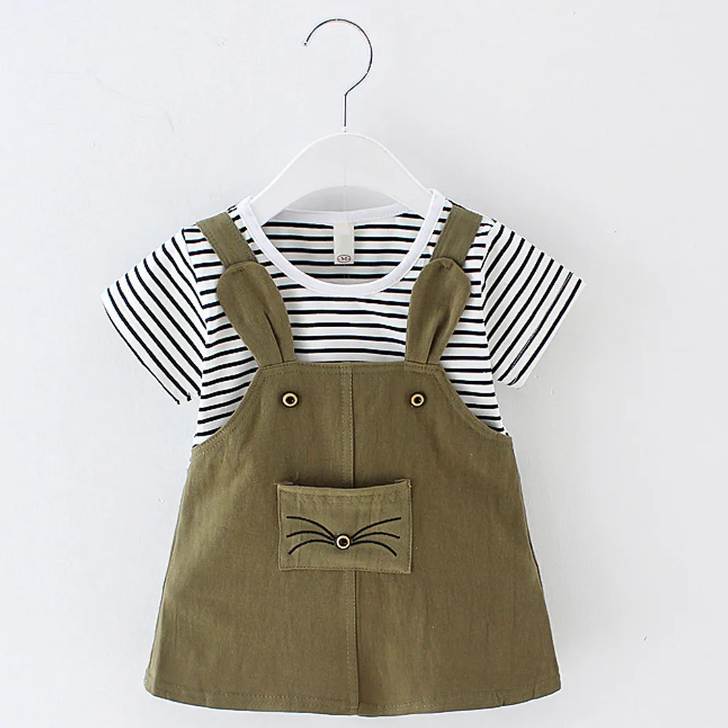 Платье принцессы в полоску с короткими рукавами и лямками для маленьких девочек