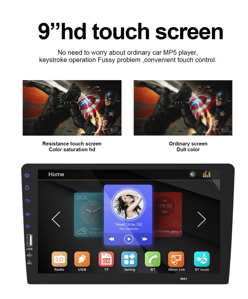 7. Высокое разрешение: HD. 9-дюймовый ЖК-монитор с сенсорным экраном дает вам незабываемые впечатления от просмотра видео высокой четкости. Поддержка форматов видео AVI / MP4 / FLV / PMP / RM / RMVB / MPG.