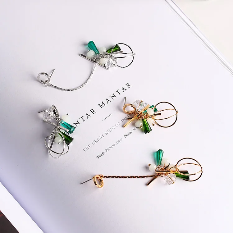 Женские Висячие асимметричные серьги, 2 шт./1 пара, Висячие длинные серьги с кристаллами, золотого и серебряного цвета, модные ювелирные украшения