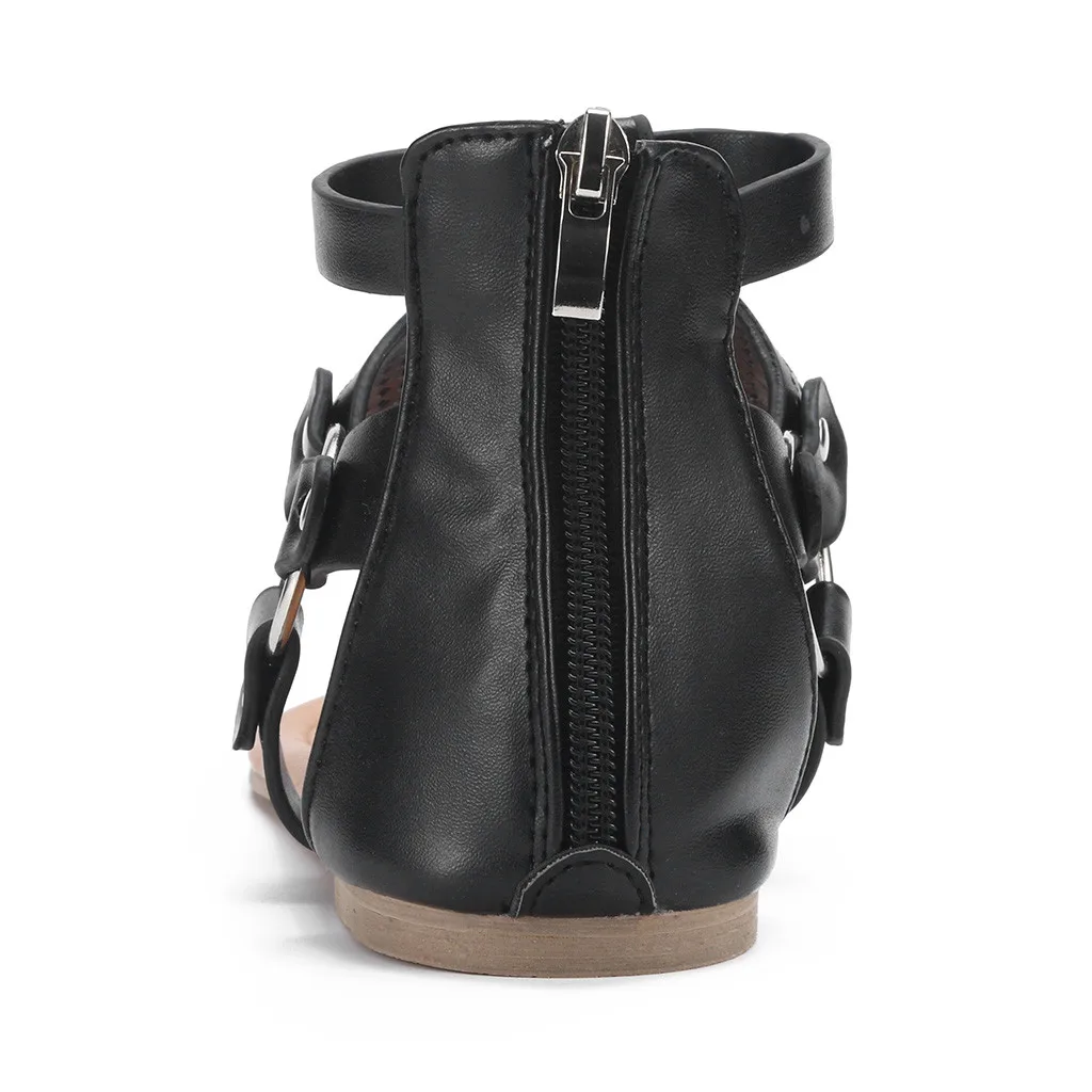 Женские повседневные однотонные сандалии в римском стиле с открытым носком на молнии; обувь на плоской подошве