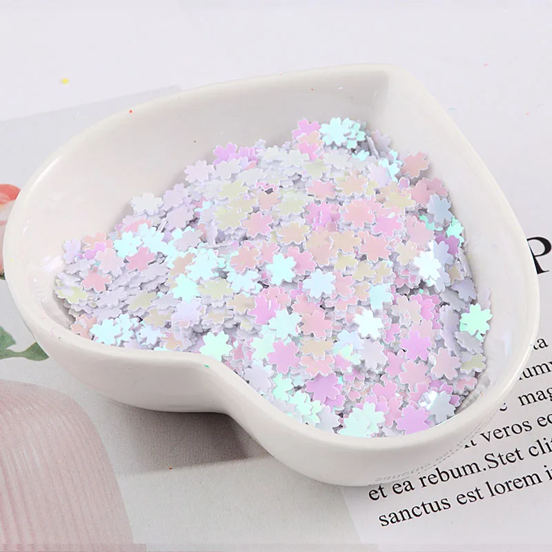 5 мм блестки Sakura для декора вещей своими руками Цвет: розовый, синий, фиолетовый, желтый и так далее Количество: 10 г в пакете Эффект: блестящие разноцветные украшения в горошек Функция: для дизайна ногтей, эпоксидная уф-смола ремесленного декора, подвеска DIY рамка украшения Особенность: романтическая модная изысканная очаровательная.
