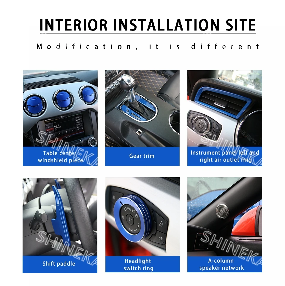 Комплект молдингов для салона SHINEKA, красно-синие декоративные накладки для салона Ford Mustang, аксессуары 2015 + Mustang, 36 шт.