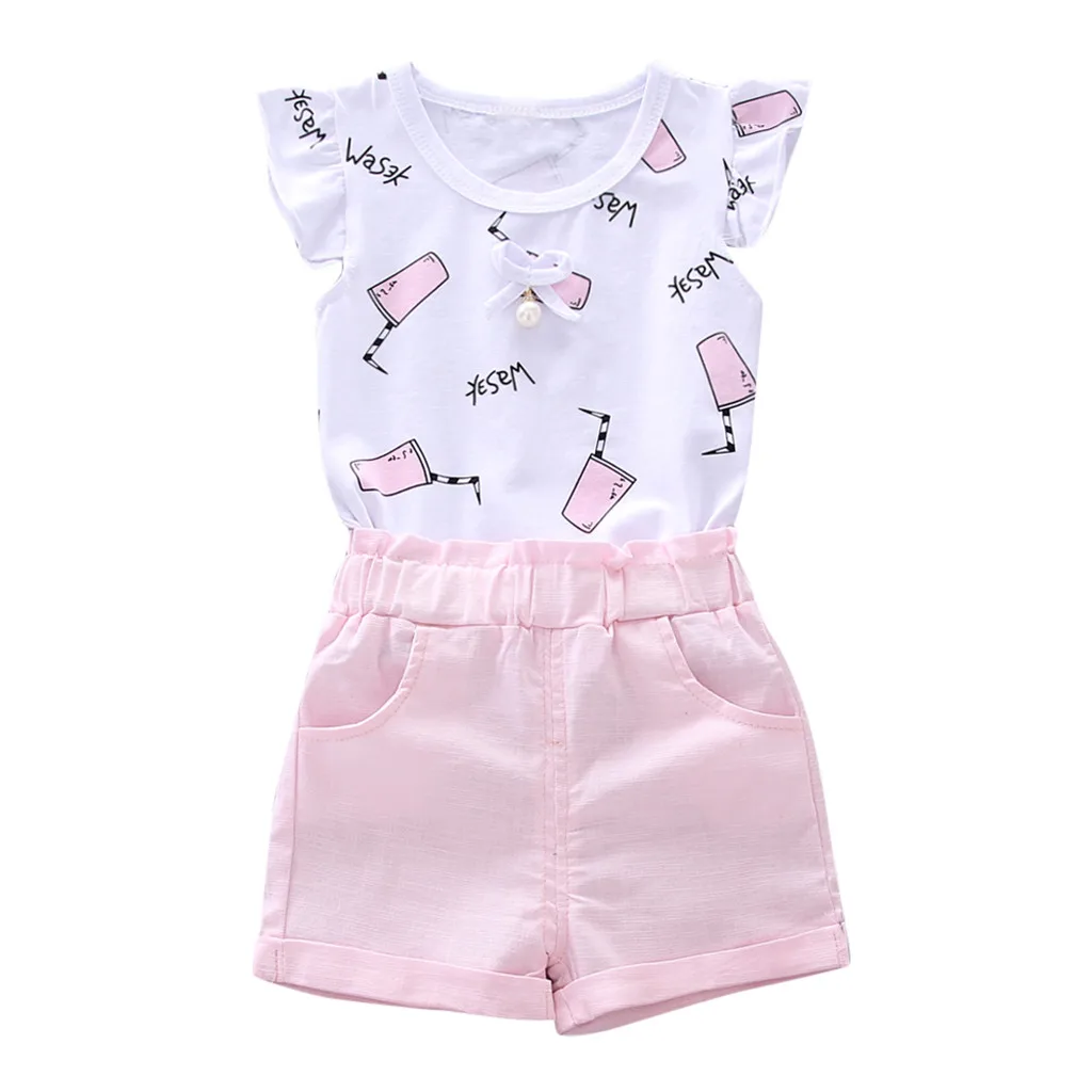 Комплект одежды для маленьких мальчиков и девочек: топ с рукавами-крылышками и надписью + шорты
