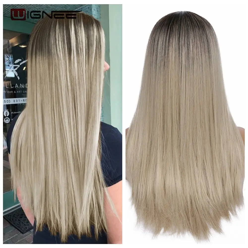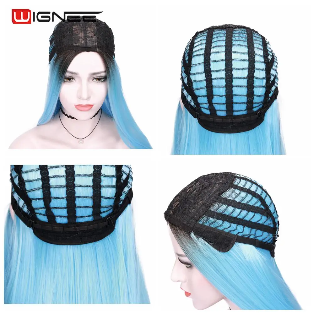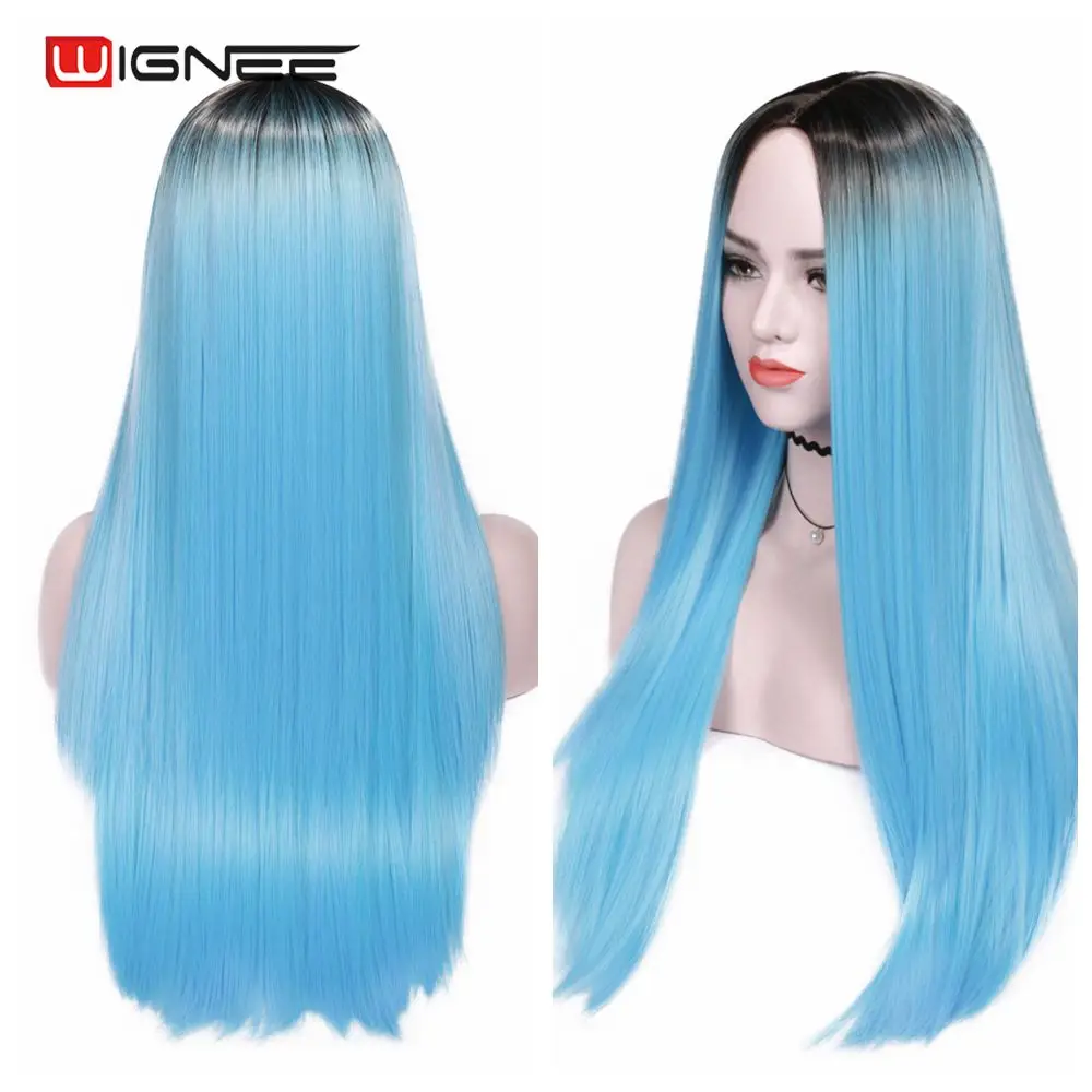 Wignee Омбре синий длинный прямой волос Синтетический парик для женщин высокая температура Жаростойкие ежедневно/партия игра трон полный парик