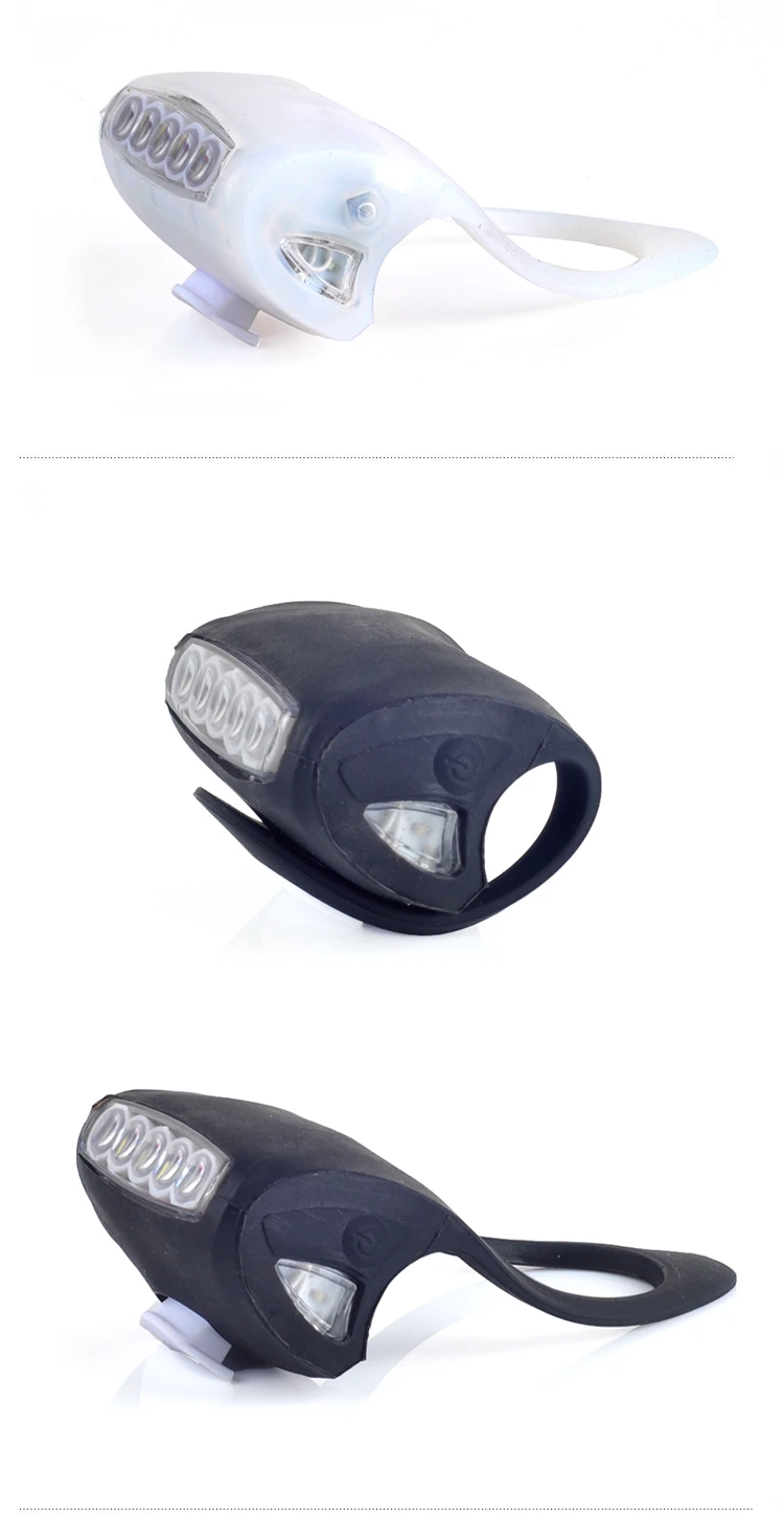 Вес около 70 г Размеры 6,1*4,5*5,5 см Цвет красный/черный/синий/белый Материал: силикон + пластик Аккумулятор 3 * AAA батареи (не входят в комплект) Модель освещения мигает/устойчивое освещение/цикл яркий