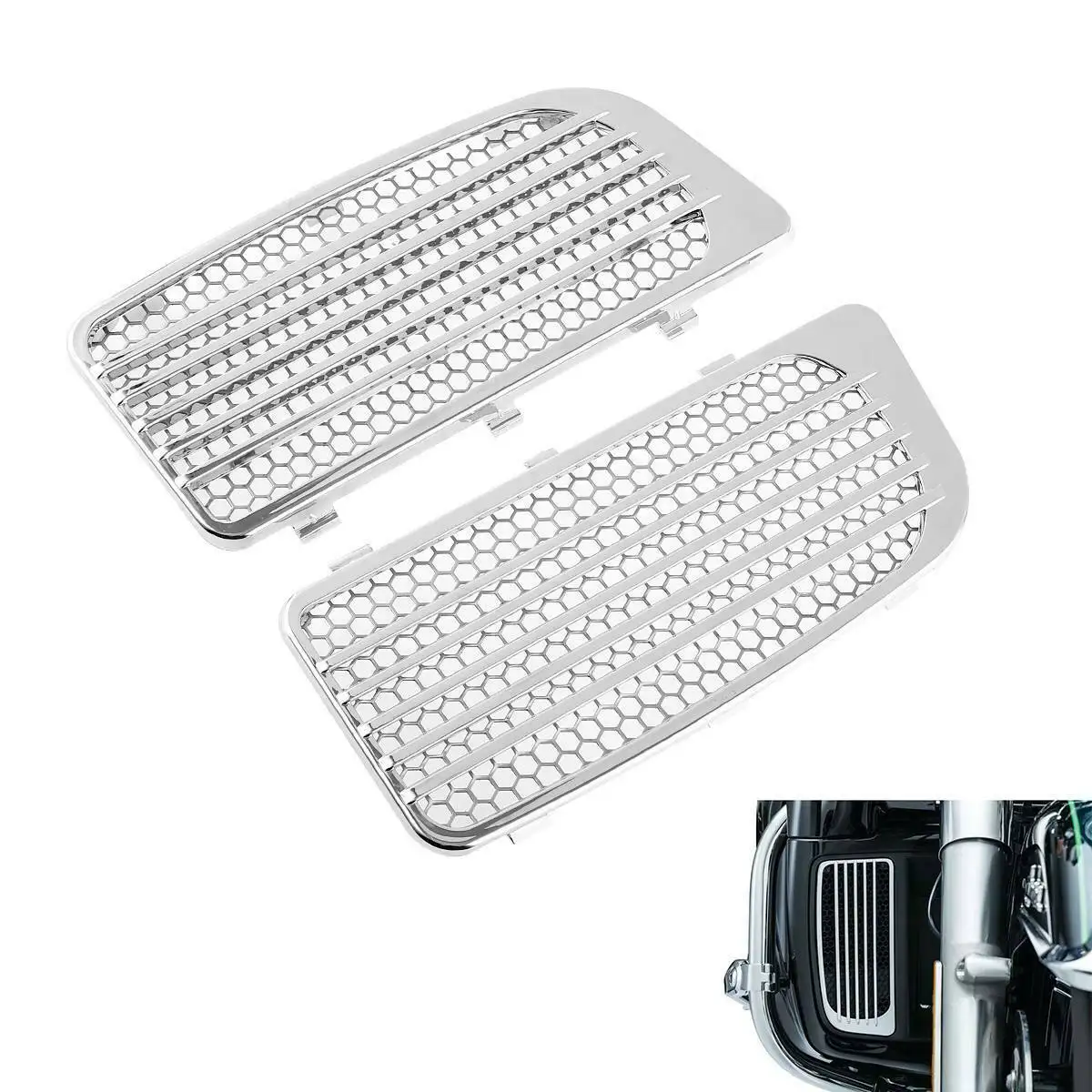 Aftermarket 100% Новый бренд Прочный и легкий хромированный АБС-пластик. Прямая замена черных грилей на складе. Коэффициент прохлады на туристических моделях, оснащенных модулями с водяным охлаждением. Беспроблемная установка без инструментов.