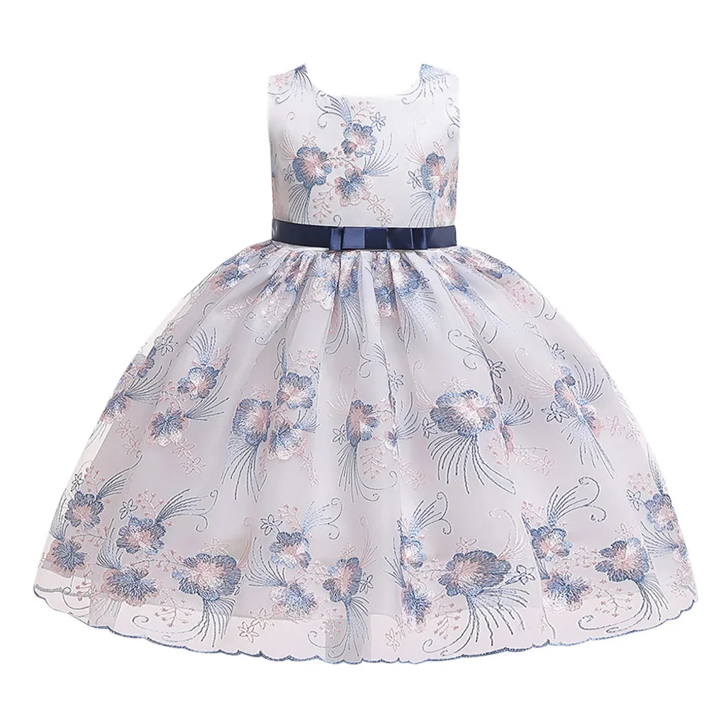 Нарядное платье-пачка принцессы с цветочной вышивкой для маленьких девочек