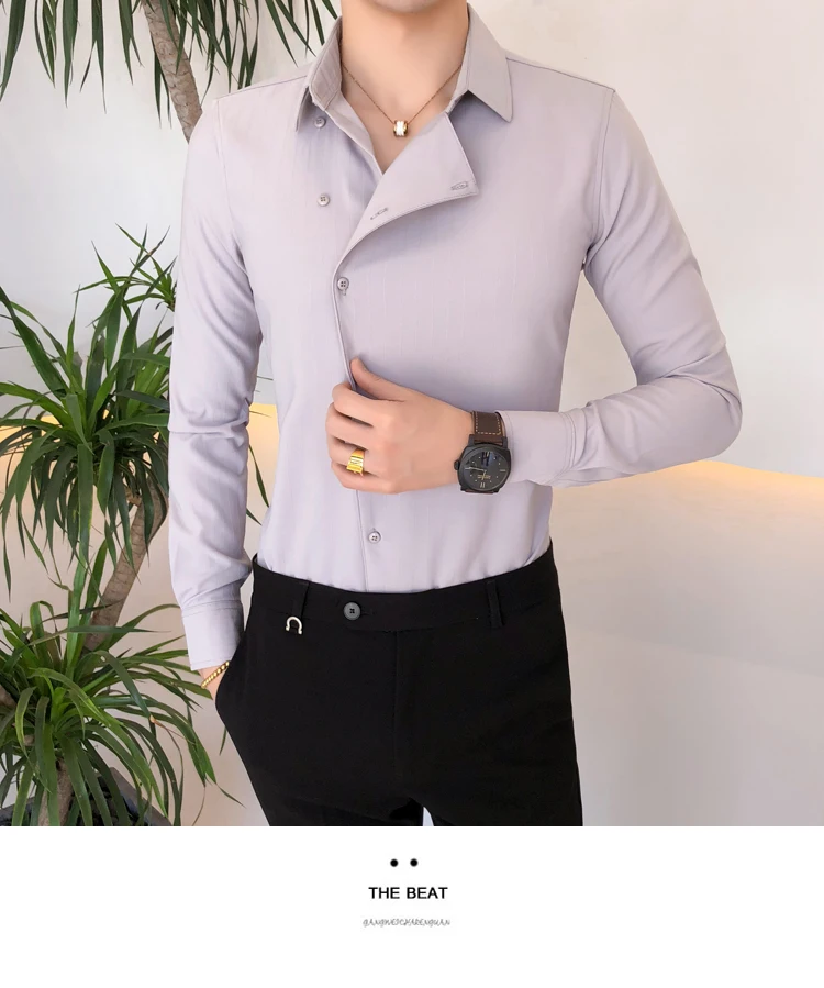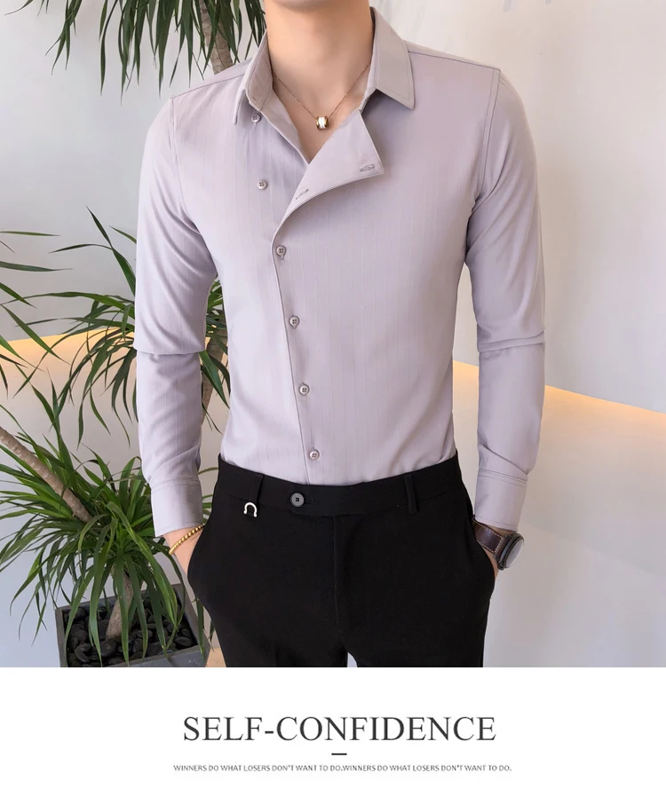 Высокое качество Нерегулярные кнопки сплошной цвет рубашка платье Slim Fit Мужские рубашки с длинным рукавом рубашки мужские Camisa Masculina смокинг одежда
