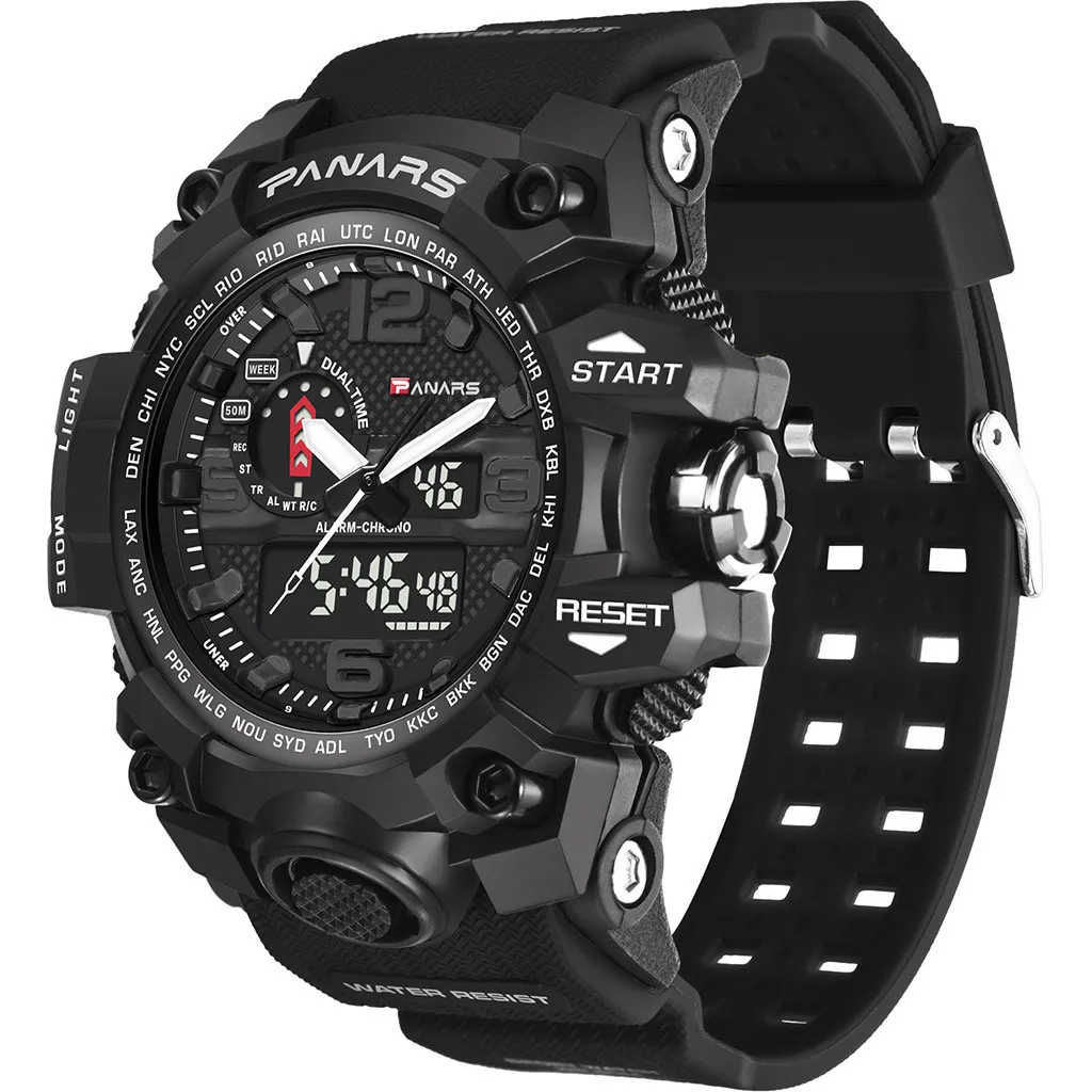 Особенности: Властный Дизайн Amazon explosion, подходит для элитных европейских и американских рынков Функция: время между двумя местами, синхронный шум, секундомер, световой, 12/24 часовая система. Водонепроницаемость: 50 метров плавания водонепроницаемый, каждый Вакуумный тест воды. Чехол Материал: высокого качества из АБС-пластика Материал ремешка: высококачественный пластиковый ремешок Материал нижней крышки: 304 Толстая нержавеющая сталь Материал пряжки: 304 Толстая нержавеющая сталь Материал зеркала: утолщенное и жесткое акриловое зеркало Цвет: черный хаки армейский зеленый Подходит для толпы: взрослых Движение: жидкокристаллический дисплей цифровой электронный механизм Батарея: SR626 + CR2025 Длина Часов: 255 мм Диаметр циферблата: 56 мм