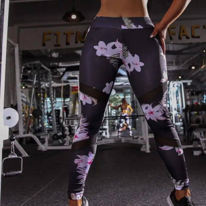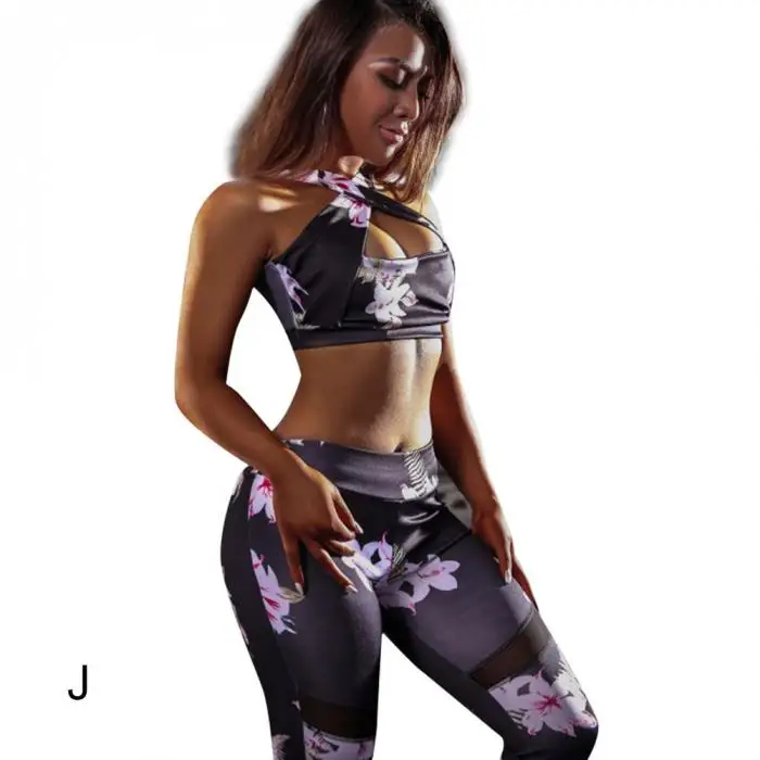 Этот комплект включает бюстгальтер с цветочным принтом и дышащие и эластичные штаны для йоги.