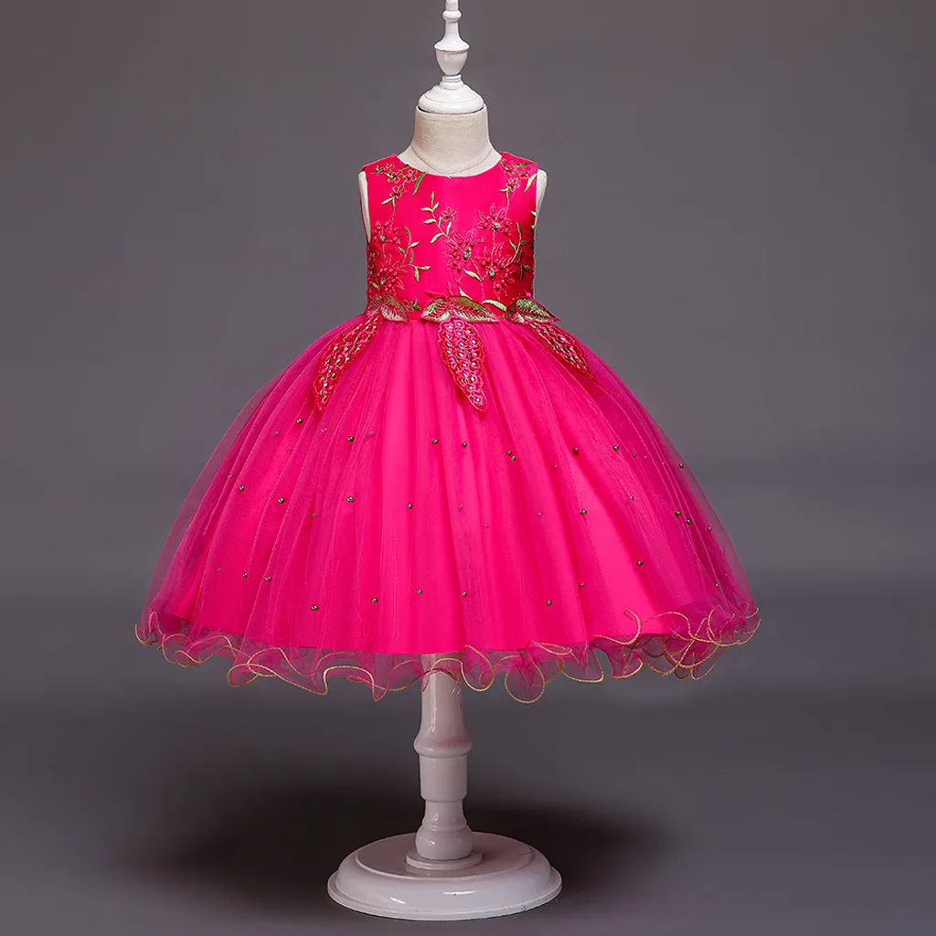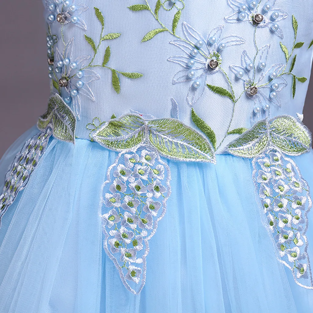 Детское кружевное торжественное платье принцессы с оборками и цветочным рисунком для девочек