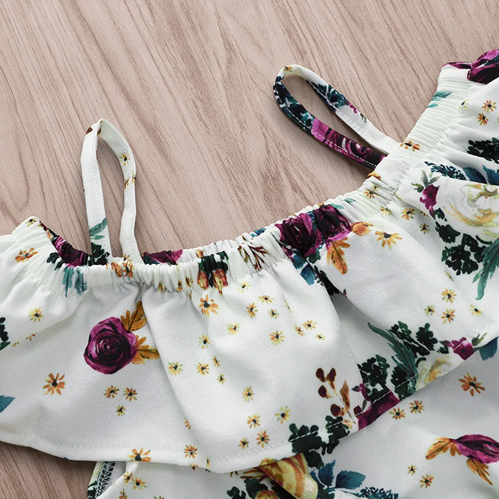 Топы с оборками и цветочным принтом для маленьких девочек; шорты; комплекты одежды из 2 предметов