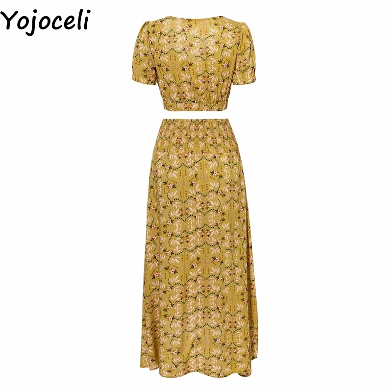 Yojoceli сексуальное длинное платье с принтом женский костюм из двух предметов летнее элегантное пляжное платье с разрезом Повседневное платье Макси женское платье vestidos