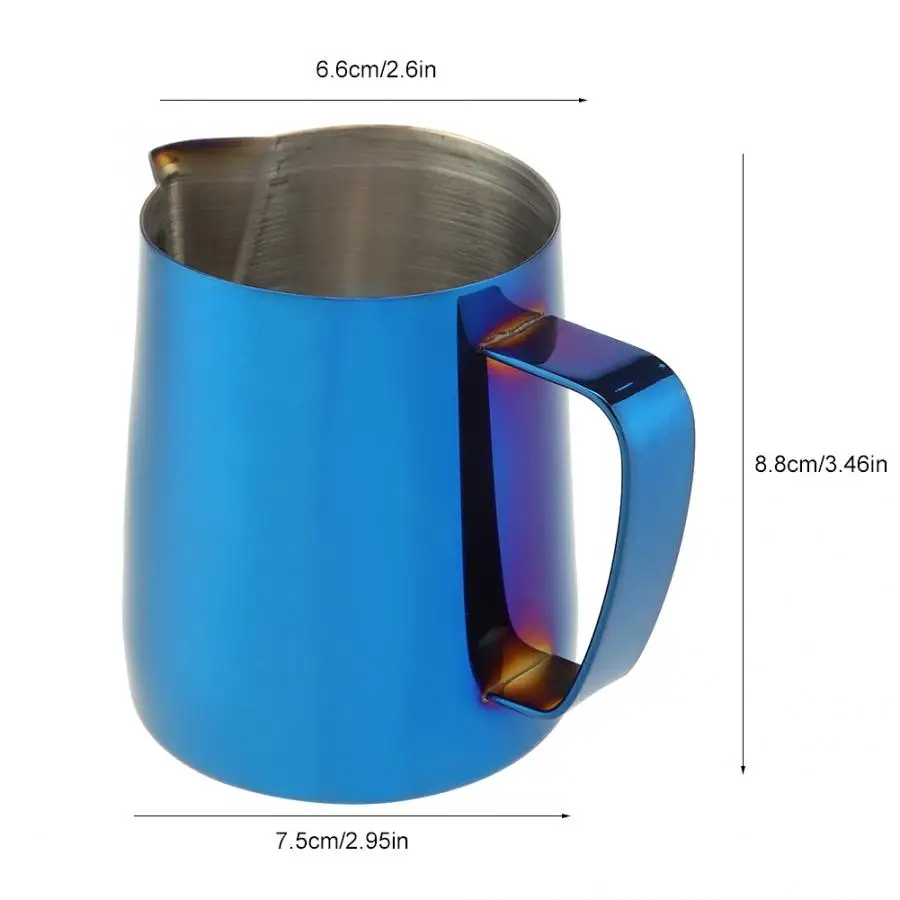 Изготовлен из высококачественной нержавеющей стали, нетоксичный, безопасный и прочный в использовании. Dripless носикПредназначен для точного прессования и Не будет портить столешницу. Молочный кувшин может помочь вам заморозить молоко для чая или кофеДаже в домашних условиях. Эргономичная ручка легко и удобно держать в руке. Широкое применение для дома, кафе, бара, ресторана, отеля и так далее.Размеры: прибл. 7,5*8,8 см/2,95 * 3.46in