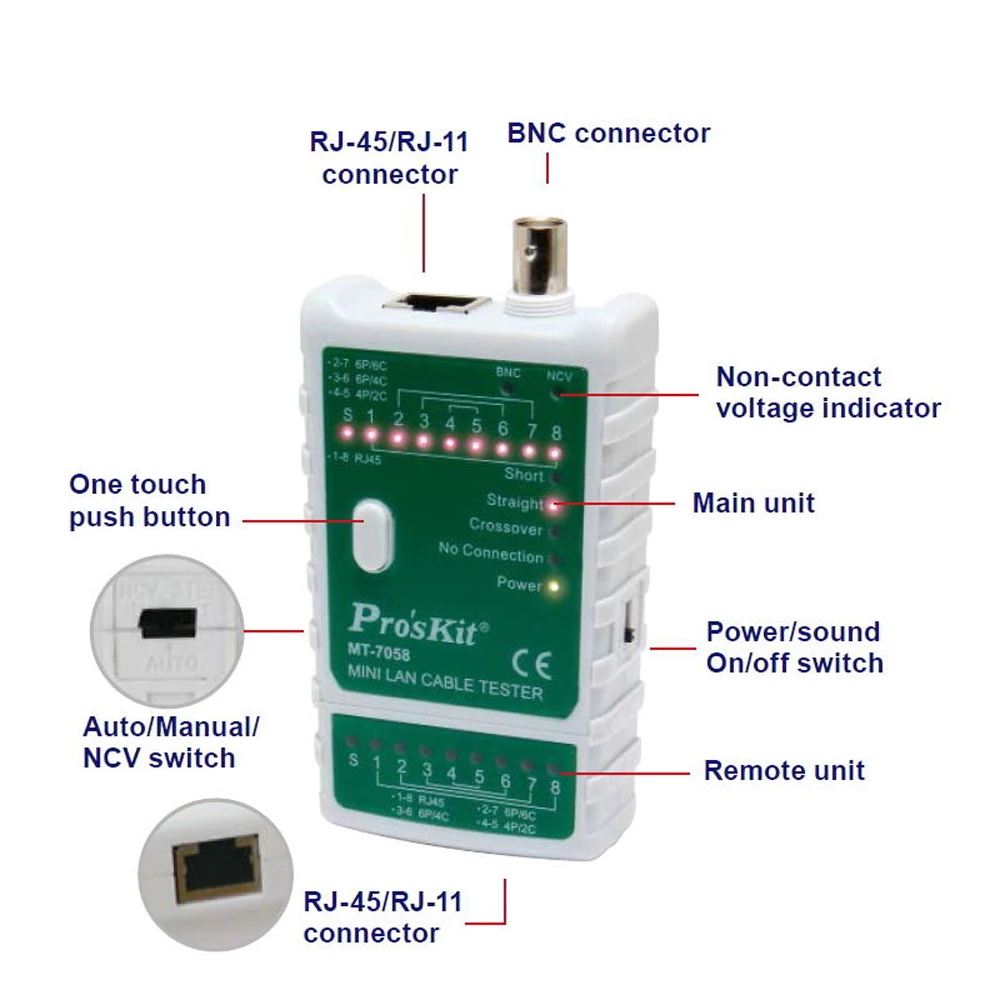 Многофункциональный сетевой тестер Pro'sKit MT-7058 мини кабель с байонетным коаксиальным разъемом тестер Беспроводной провода Напряжение Detecto кабель Tracker Checker