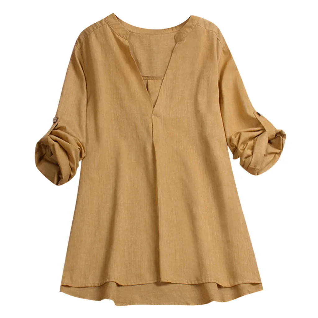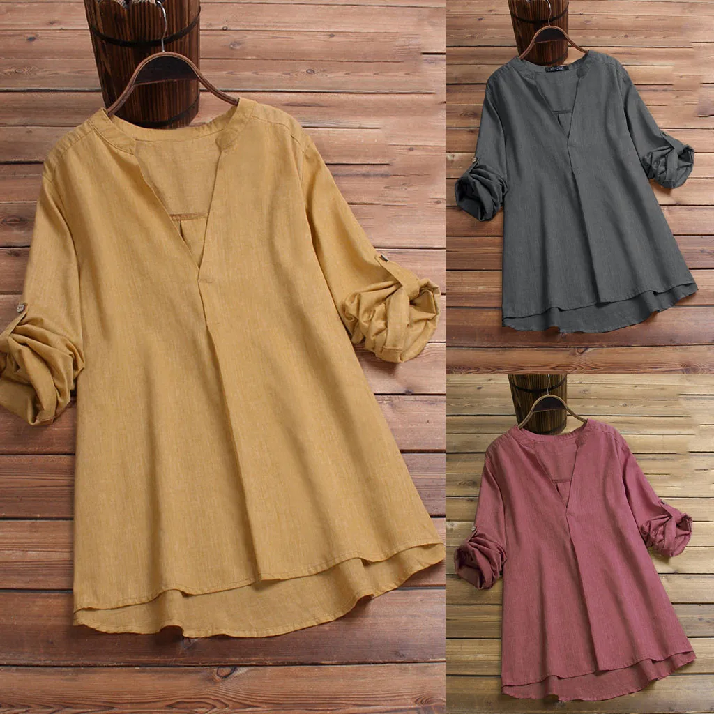 Женский модный однотонный топ с v-образным вырезом и длинным рукавом