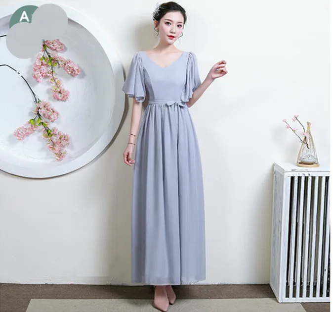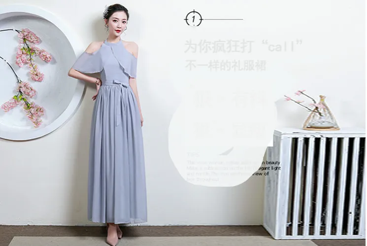 N040 женские длинные шифоновые платья подружки невесты цвета шампанского, серого и розового цветов
