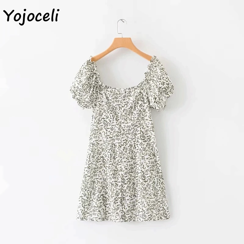 Yojoceli chic листья Платье с принтом для женщин Лето 2019 г. квадратный средства ухода за кожей Шеи Кнопка МИНИ богемное пляжное