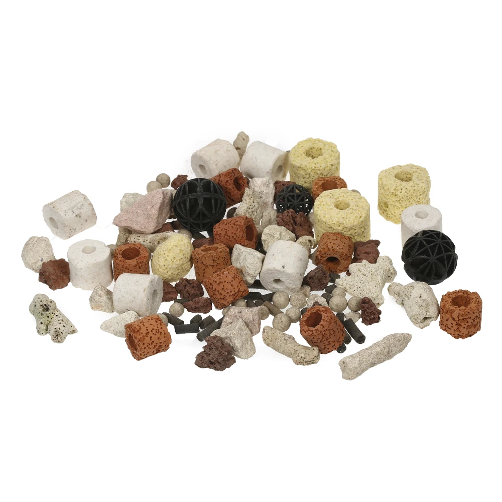 10 типов фильтров: биохимические шары, бактериальные кольца, красные кольца, керамические кольца, биохимические шарики, бактериальные шары, медицинские камни, вулканические камни, кольца из конопли и активированный уголь.