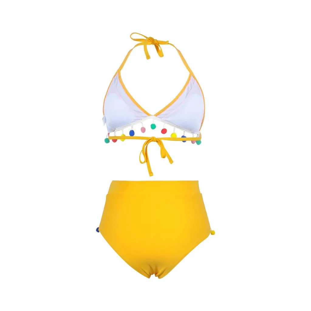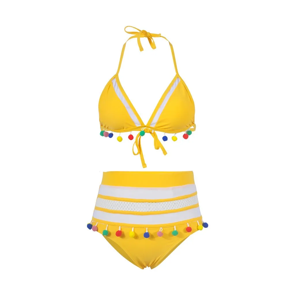 Комплект бикини из двух предметов с высокой талией, Одноцветный сетчатый купальник с кисточками