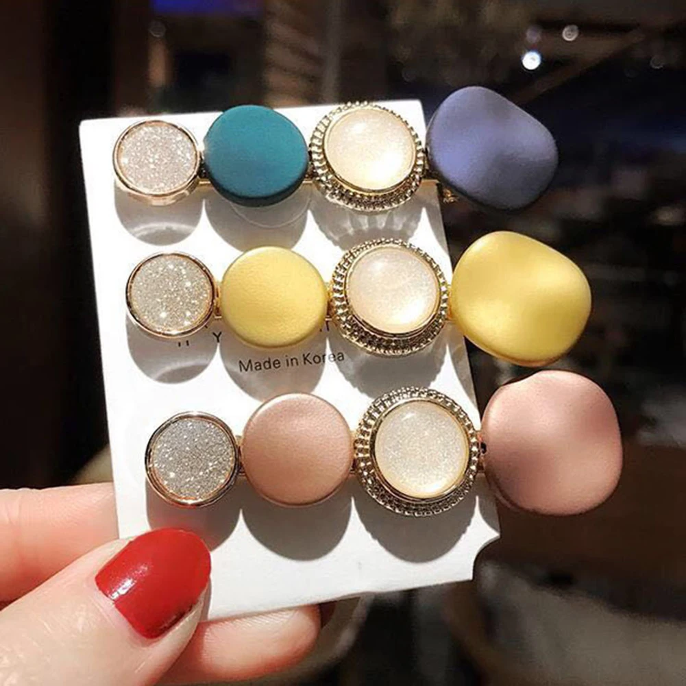 Простые круглые хрустальные стразы в форме пуговиц, заколки для волос из сплава