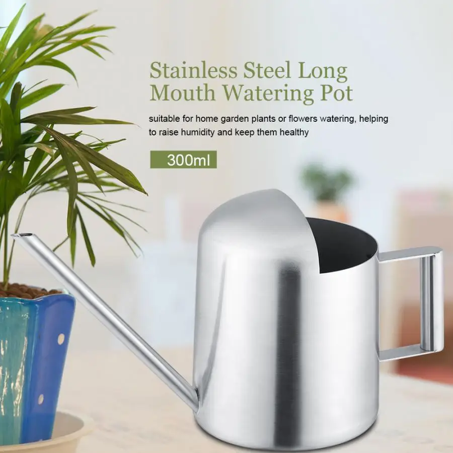 Горшок для полива из нержавеющей стали полезен для садоводства, отлично подходит для полива растений в помещении и на улице. Конструкция из полированной нержавеющей стали устойчива к коррозии, царапинам, прочная и долговечная в использовании.