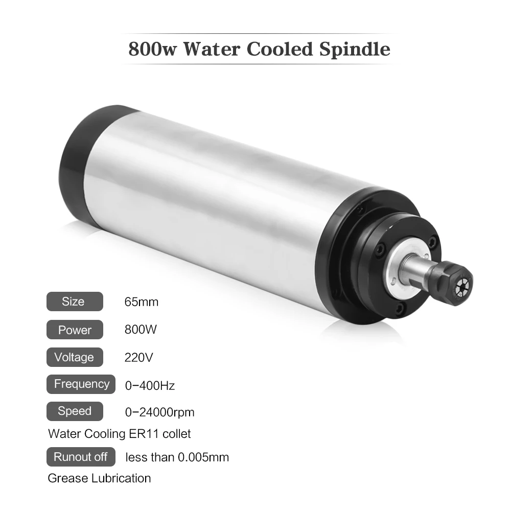 1x800 Вт мотор шпинделя1x1.5 кВт/220 В инвертор HY1x3,5 м водяной насос1 х 5 м водопроводные трубы1x65 мм Шпиндельный зажим13 x ER11 ЦангаСпецификация: