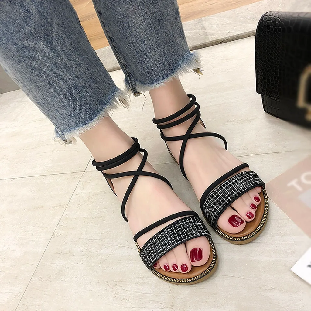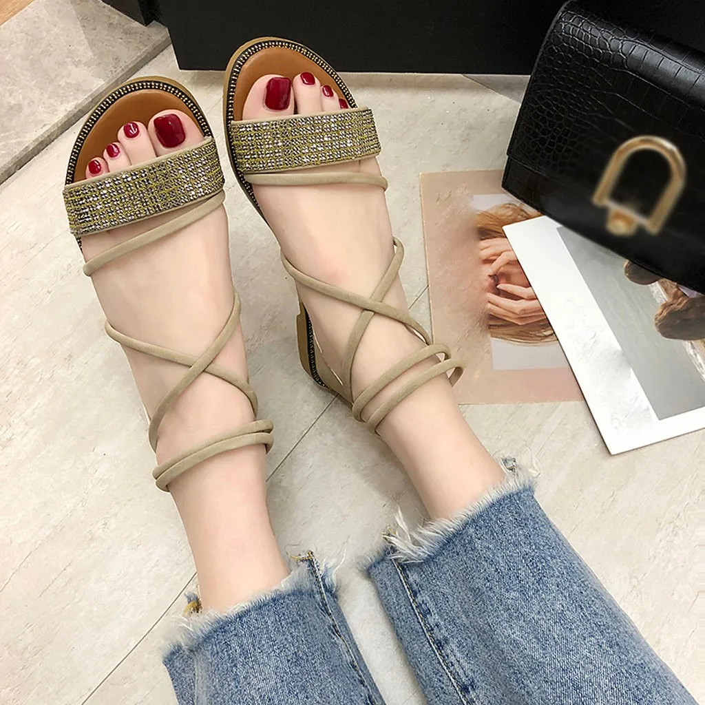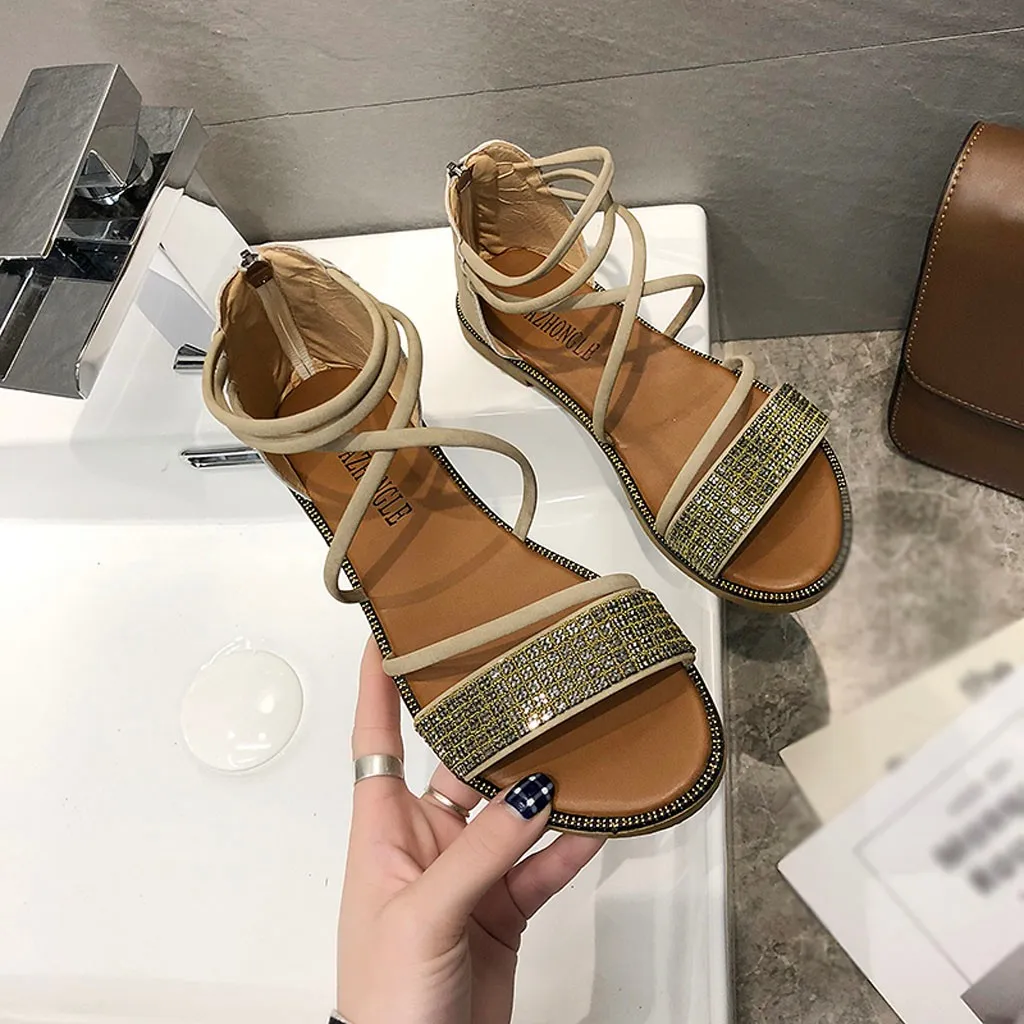 Женские Яркие босоножки на молнии со стразами; ботильоны; повседневные пляжные сандалии с открытым носком