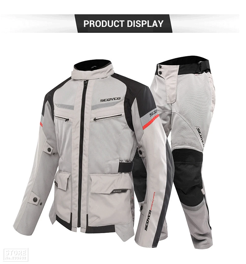 Специальное предложение: Бренд: SCOYCO Размер: M, L, XL, XXL, XXXL Цвет: серый/ЧерныйС: защитное снаряжение EVA В комплект входит: 1 * мотоциклетная куртка