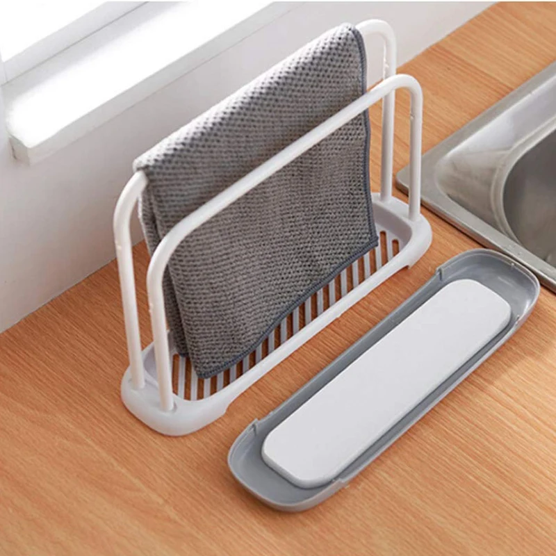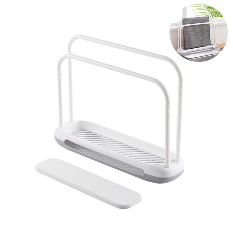 Detachable Towel Storage Rack Dishcloth Sponge Drying Rack Quick Drying Water Absorbing Double Rod Rag Stand (White)