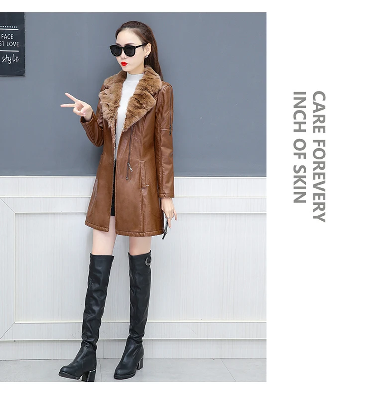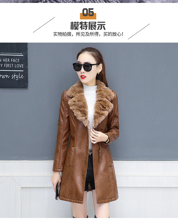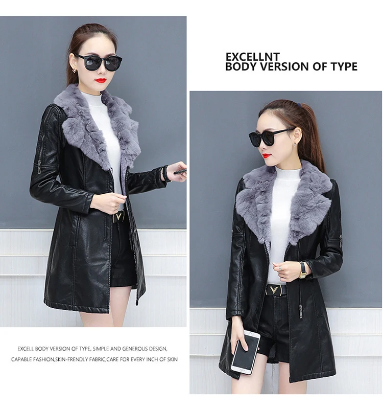 Женская кожаная куртка на молнии, черная длинная мотоциклетная куртка с меховым воротником, модель h142 размера плюс, 2019