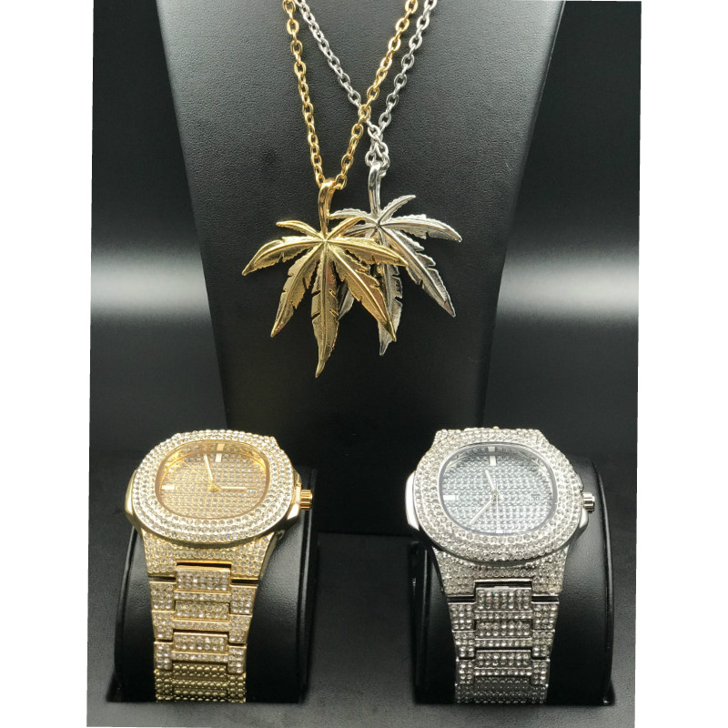 Часы: 100% Новый бренд Лабораторные алмазы камни на браслете Нержавеющая сталь сзади Позолоченный Часовой механизм: кварцевый (Япония) Батарея в комплекте. Чехол Размеры: 43 мм (Диаметр) Вес: 120 грамм Замок: с отворотом Пол: Для мужчин/'s Съемные звенья (регулируемые) Роскошный стильный чехол-накладка Упаковочный лист (1) 2 * часы 2 * Цепочки и ожерелья 1 * Подарочная коробка в комплекте Упаковочный лист (2) Часы-1 шт. 1 * Цепочки и ожерелья 1 * Подарочная коробка в комплекте