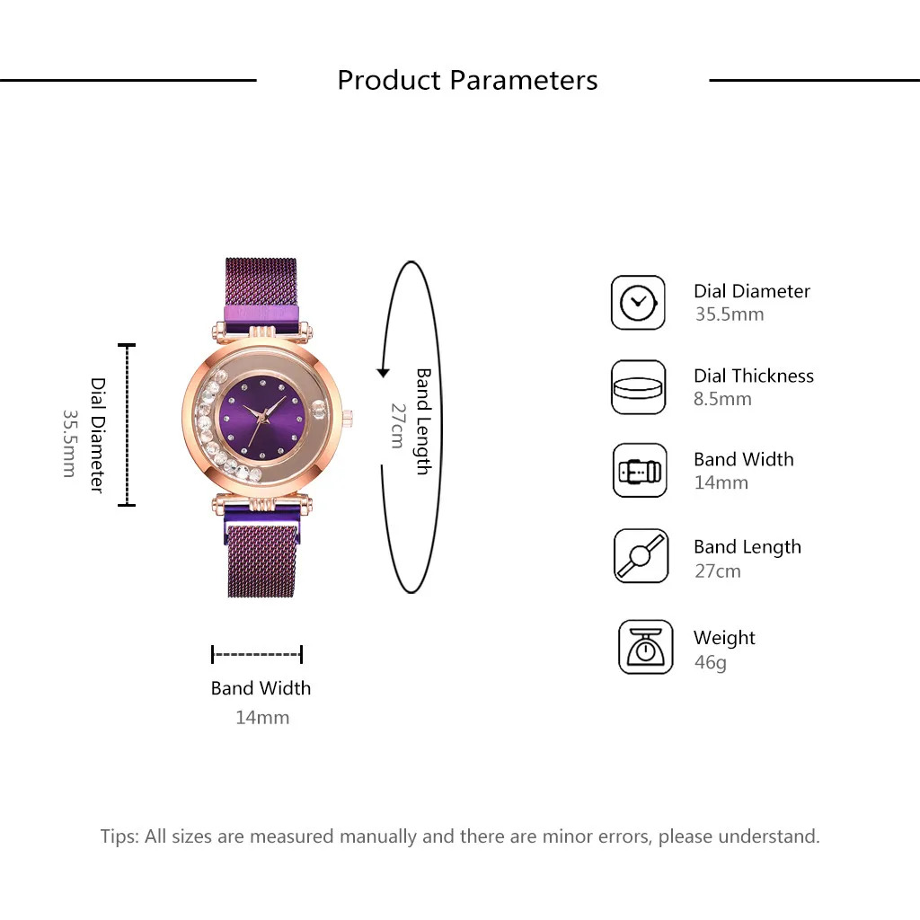 Новый магнитный ремешок устраняет проблему, что ваш ремешок слишком короткий или слишком длинный, чтобы носить неправильно. 27 см может быть отрегулировано свободно. Ремешок прочный, а всасывание-сильное. Это лучший выбор для вашей моды.