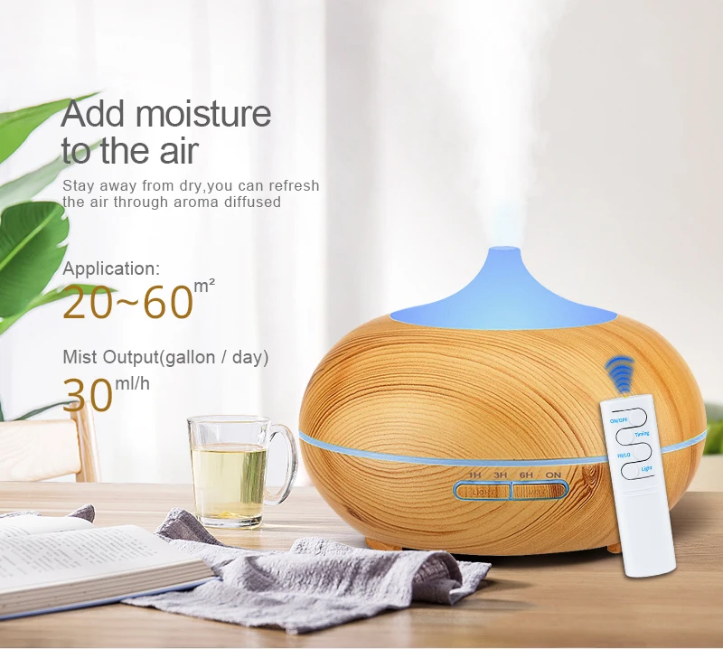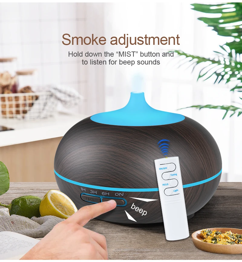 550 мл с дистанционным управлением USB диффузор арома-масла деревянный Электрический увлажнитель воздуха ультразвуковой увлажнитель воздуха ароматерапия тумана для дома