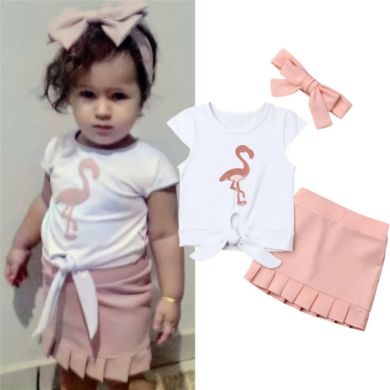 Новейшая модная одежда для маленьких девочек из 3 предметов с изображением фламинго!