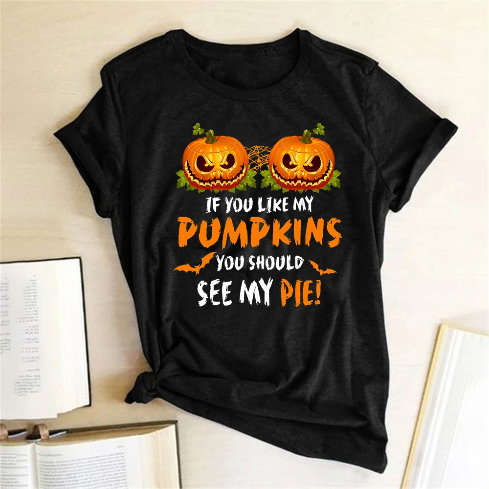 Если вам нравятся мои тыквы, вы должны увидеть мой пирог печати футболки для Хэллоуина женская летняя графическая футболка повседневные топы для женщин
