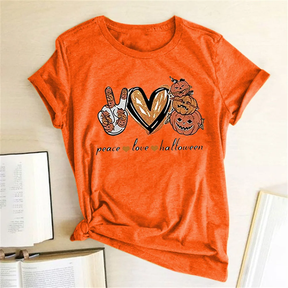 Женские футболки на Хэллоуин с принтом тыквы и сердца, модные футболки с коротким рукавом, эстетическая одежда, лето 2020