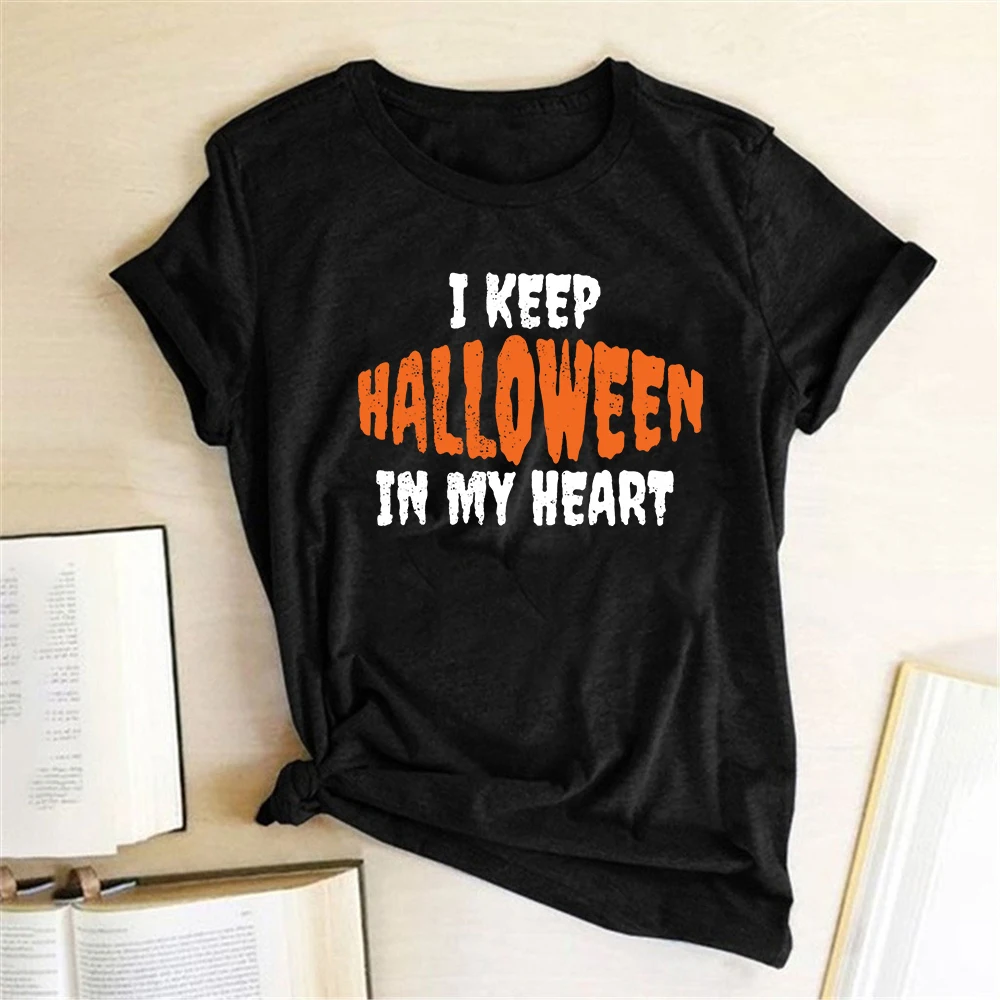 Женские футболки с принтом «I Keep Halloween In My Heart», модные футболки с коротким рукавом для лета 2020