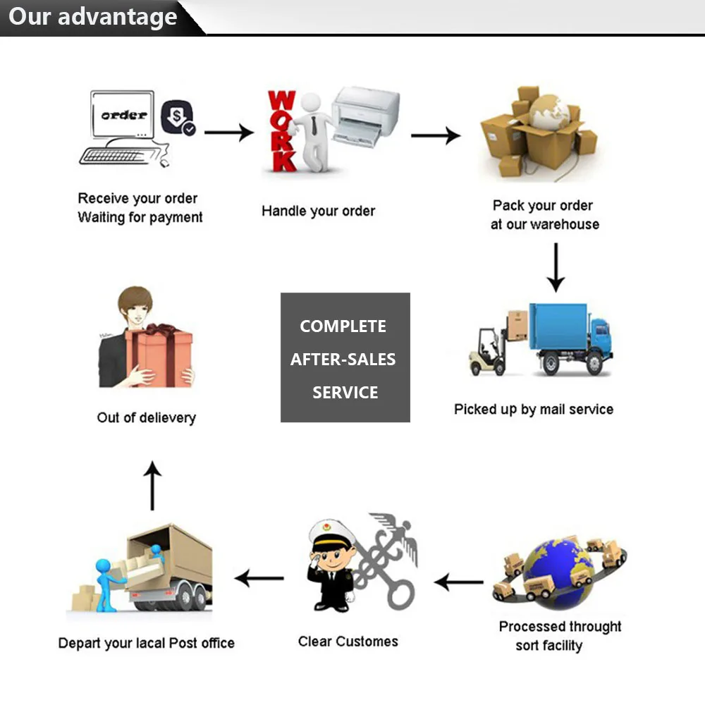 2) Мы отправляем по всему миру авиапочтой Китая, ePacket и AliExpress стандартной доставкой. (если есть лучший способ, мы также выберем, мы дадим вам получить продукт быстрее.)